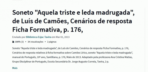 Soneto "Aquela triste e leda madrugada" de Luís de Camões : cenários de resposta de ficha formativa